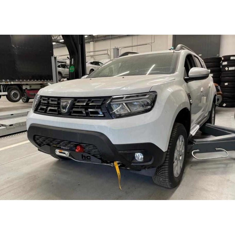 Dacia Duster III 2021- płyta montażowa wyciągarki pod oryginalny zderzak. Przeznaczona do wyciągarek o uciągu do 7000lbs i wymiarach otworów montażowych od 76x98 do 76x188mm. Np. Superwinch Terra 45, PowerWinch PW6000E. Wykonana z blachy stalowej konstrukcyjnej o grubości 6mm. Śrutowana i malowana proszkowo w technologii dwuwarstwowej ze strukturą. Montaż nie wymaga wiercenia ani spawania. Konieczne jest częściowe wycięcie środkowej kratki zderzaka w okolicach ślizgu liny. Waga 10,4 kg