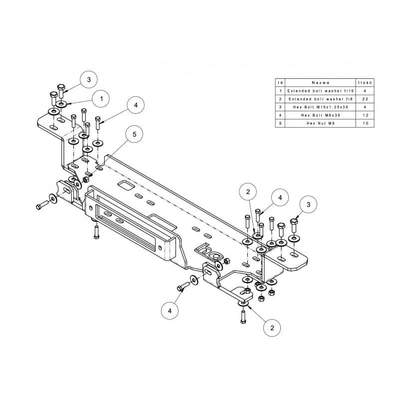 Mitsubishi Pajero IV 2006-2014 płyta montażowa wyciągarki o uciągu do 12500lbs. Pod oryginalny zderzak. Wykonana ze stali konstrukcyjnej o grubości 6 mm i 8 mm. Śrutowana i malowana proszkowo w technologii dwuwarstwowej ze strukturą. Mocowana w fabryczne otwory samochodu. Nie wymaga wiercenia ani spawania. Maksymalna długość montowanej wyciągarki to 57 cm. Waga ok. 10,2 kg.