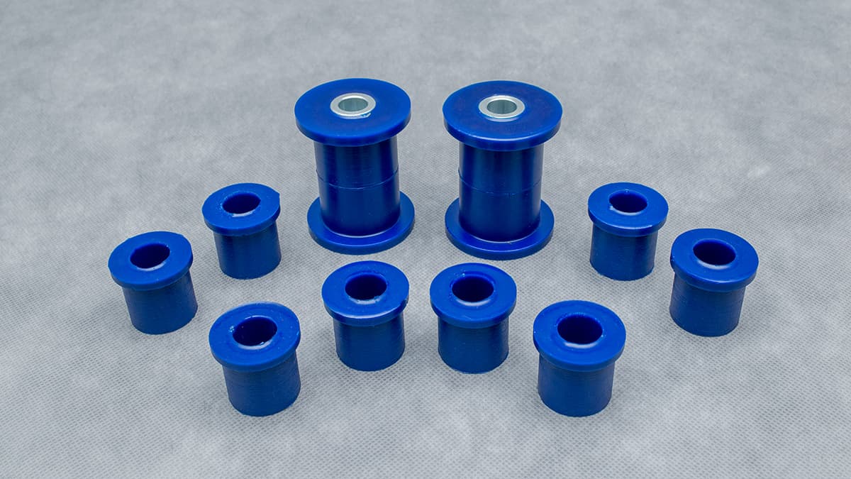 1) Tuleje resora tylnego przednie -2szt + 2szt tulejek metalowych