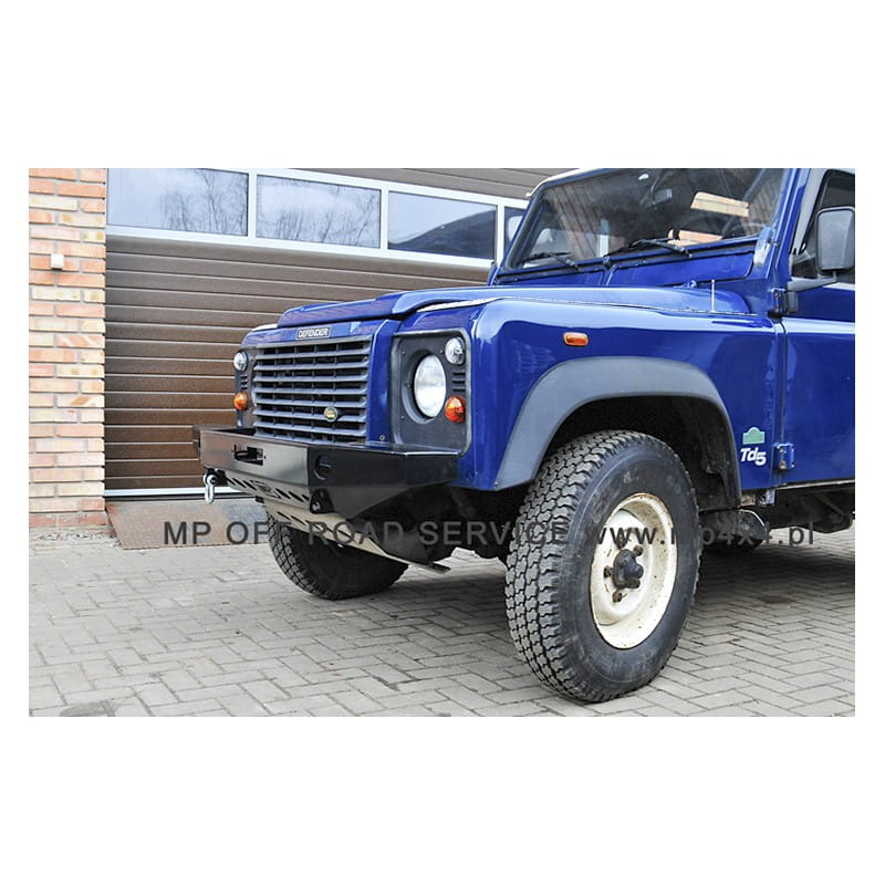 Zderzak skrzynkowy HD dedykowany do samochodów marki Land Rover Defender 90/110/130. Wersja zderzaka bardziej wysunięta do aut z wysuniętą atrapą chłodnicy (nowsze Defendery). Bardziej wysunięty zderzak umożliwia montaż wyciagarki bez potrzeby przycinania atrapy chłodnicy i modyfikacji chłodnicy.